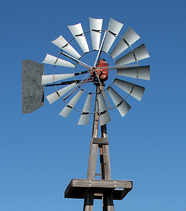 Wind energy has been exploited in Kansas since early days. Traditional European-style windmills were built across the United States, including some in Kansas, which were used mainly for grinding grain. The conventional American windmill was invented in the mid-1800s and quickly spread by the tens of thousands in myriad forms across the Midwest and Great Plains. Its primary use was for pumping groundwater. In contrast to European windmills, American windmills have many blades in their wheels, at least a dozen to more than 100 blades in some models.