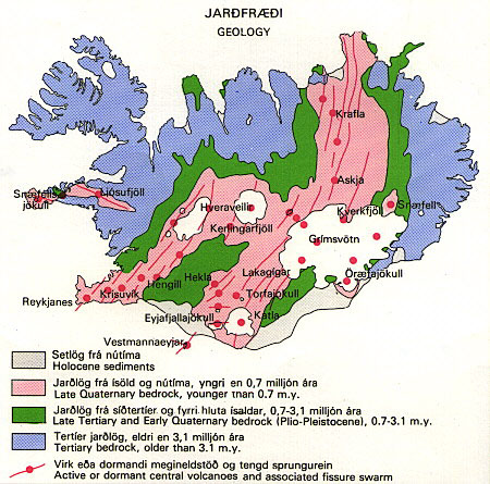 General geology of Iceland. Prominent volcanoes and glaciers (