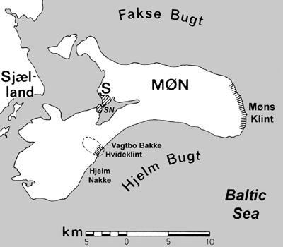 ![]() Figure 10-7. Measured profile of Hvideklint section as it appeared in 1979. Note 2X vertical exaggeration; scale in m; adapted from Aber et al. (1989). | |
