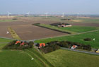 | Detailed view of ponds and wetland vegetation next to Vinderupvold. Notice the spoil piles next to the drainage ditch, Skærbæk Å, along top of view. Kite flyers standing at upper right. |