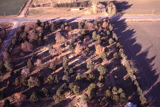 | Vertical view over Halstead cemetery. The upper half depicts the older portion