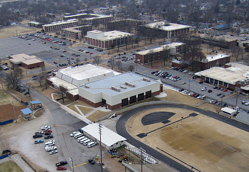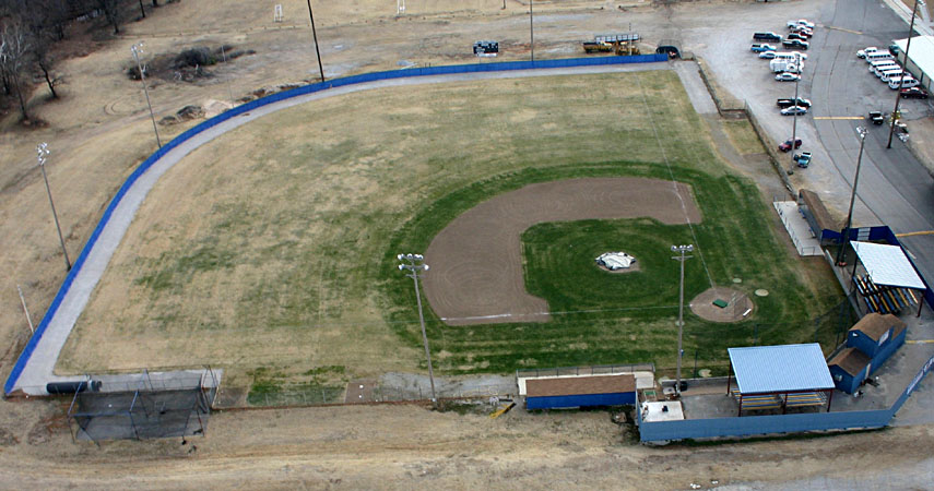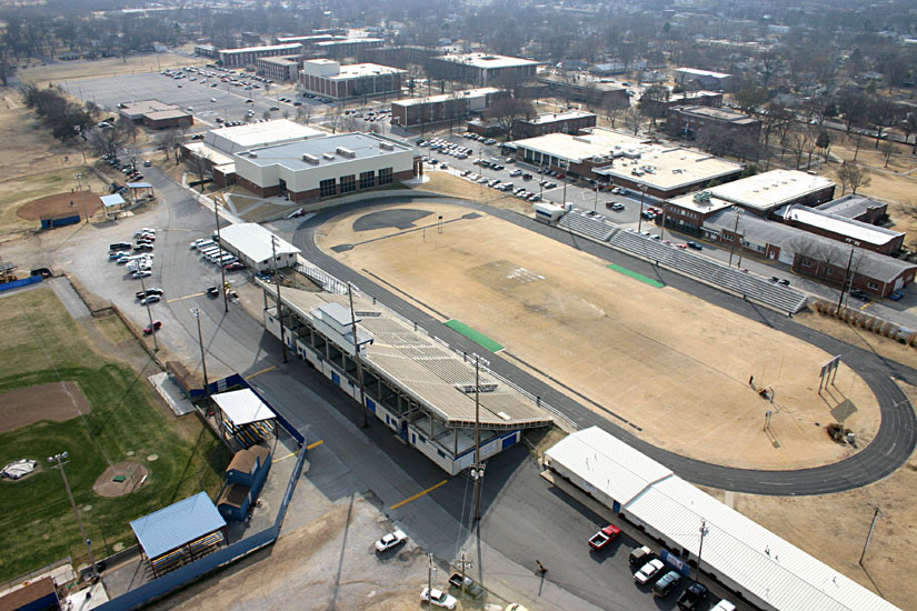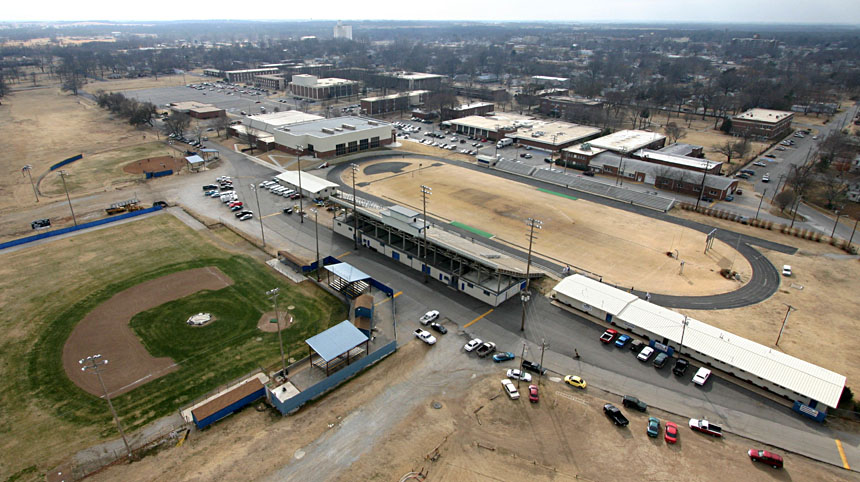 | Football stadium and the eastern side of the NEO A&M College campus. Wide-angle view toward southwest. |