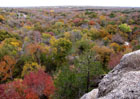 | Ground view taken from the overlook point on Bromide Hill looking northward over Rock Creek and autumn color in the Bromide Pavilion below. The hill is capped by massive conglomerate (lower right). |