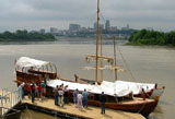 The Discovery Expedition reached the mouth of the Kansas (Kaw) River in the last days of June, 2004. At "Kaws Mouth" the reenactors spent several days for repair and rest, while they entertained the public with demonstrations and explanations. The campsite was set up at Kaw Point Park, Kansas City, Kansas, and the boats were docked a short distance up the Kansas River. The following airphotos were acquired with a helium blimp on June 28, 2004. Click on small images to see larger pictures; all images © by the authors.