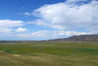 | Looking northward (left) with the central San Luis Valley in the background. The trail leads up to the low saddle between two higher hills. View toward northwest (right) with the Conejos River valley behind western Saddleback Mountain and the San Juan Mountains on the distant horizon.