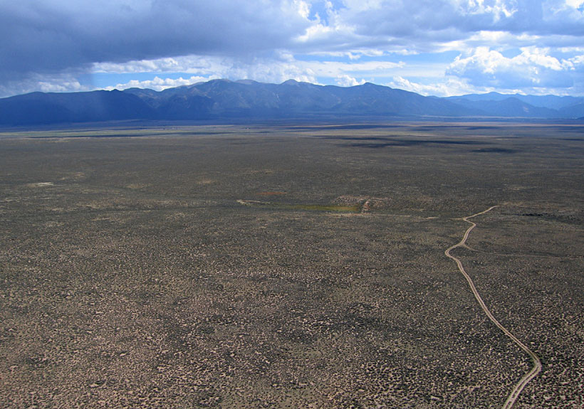 All of our kite and blimp aerial photography is conducted from points of public access and, as always, from a height of less than 500 feet (~150 m), according to FAA regulations for unmanned tethered aircraft. Such low-height images in oblique and vertical views provide high spatial resolution and depict the ground in great detail. The following sites are arranged generally from north to south within the San Luis Valley and Taos Plateau.